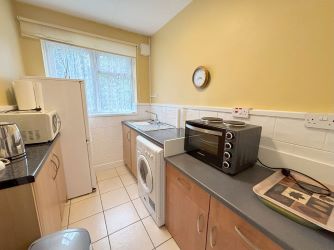 Having a double glazed window overlooking communal rear gardens, ceiling light point, wall mounted Dimplex storage heater and double built-in wardrobeRe-Fitted Shower Room - 1.7m x 2.9m (5'7" x 9'6")