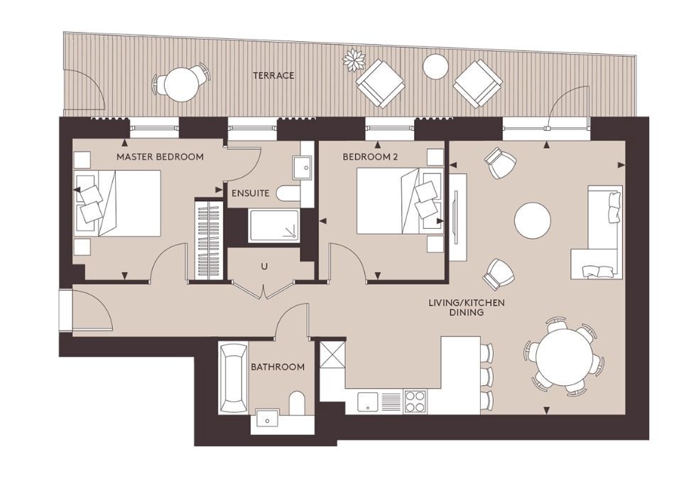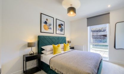 The flat features two well-proportioned bedrooms, perfect for a small family or professionals looking for extra space. With two contemporary bathrooms, morning routines will be a breeze, ensuring convenience and privacy for all residents. The heart of the home is a spacious reception room that flows seamlessly into a large canal-side terrace, providing a delightful outdoor space to relax and entertain while enjoying picturesque views of the water.